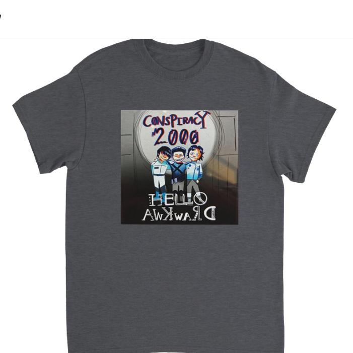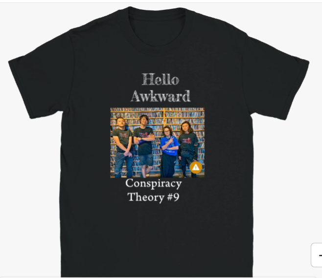 This Hello Awkward T-Shirt is 100% cotton and features a large high quality photo of the band on the front! It is also features what we think would be a great name for our debut album: Conspiracy Theory #9! Buy it now while supplies last!